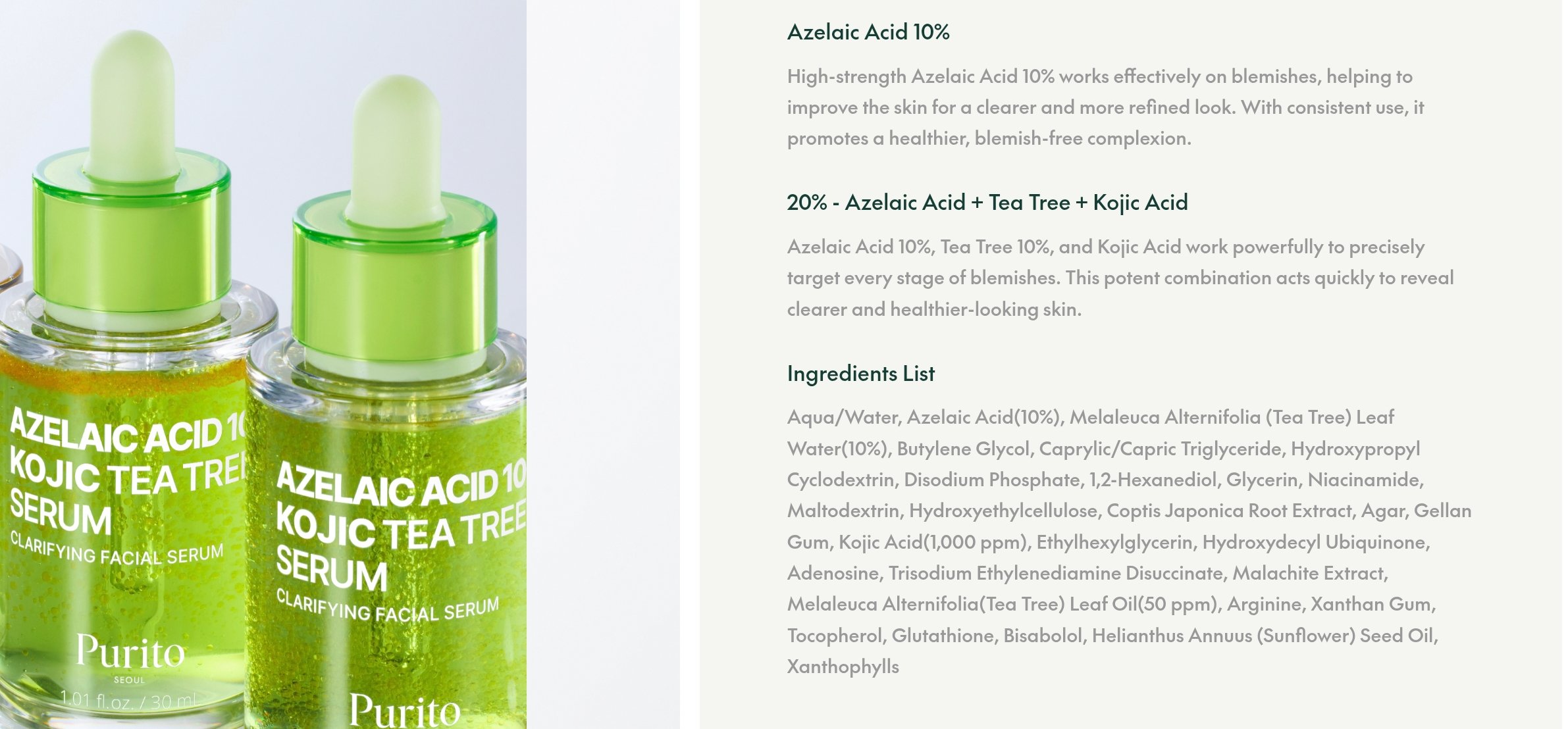 Purito SEOUL - Azelaic Acid 10% + Kojic Acid + Tea Tree Serum