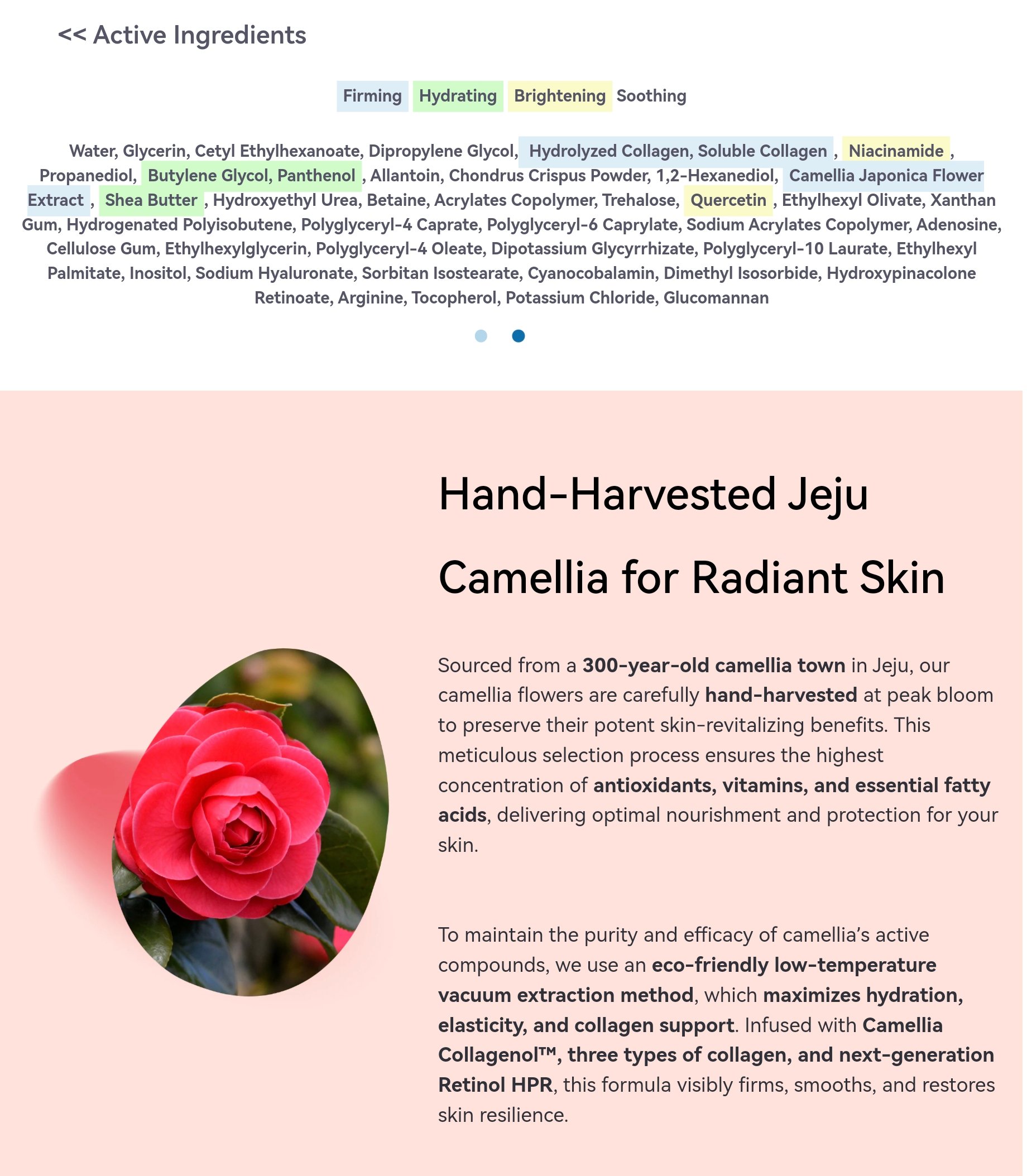 لمرونة البشرة، بتركيبة غنية بالكولاجين البحري وخلاصة زهرة الكاميليا الكورية.